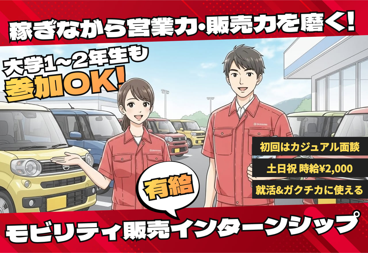 | インターン名 | モビリティ販売 有給長期インターンシップ |